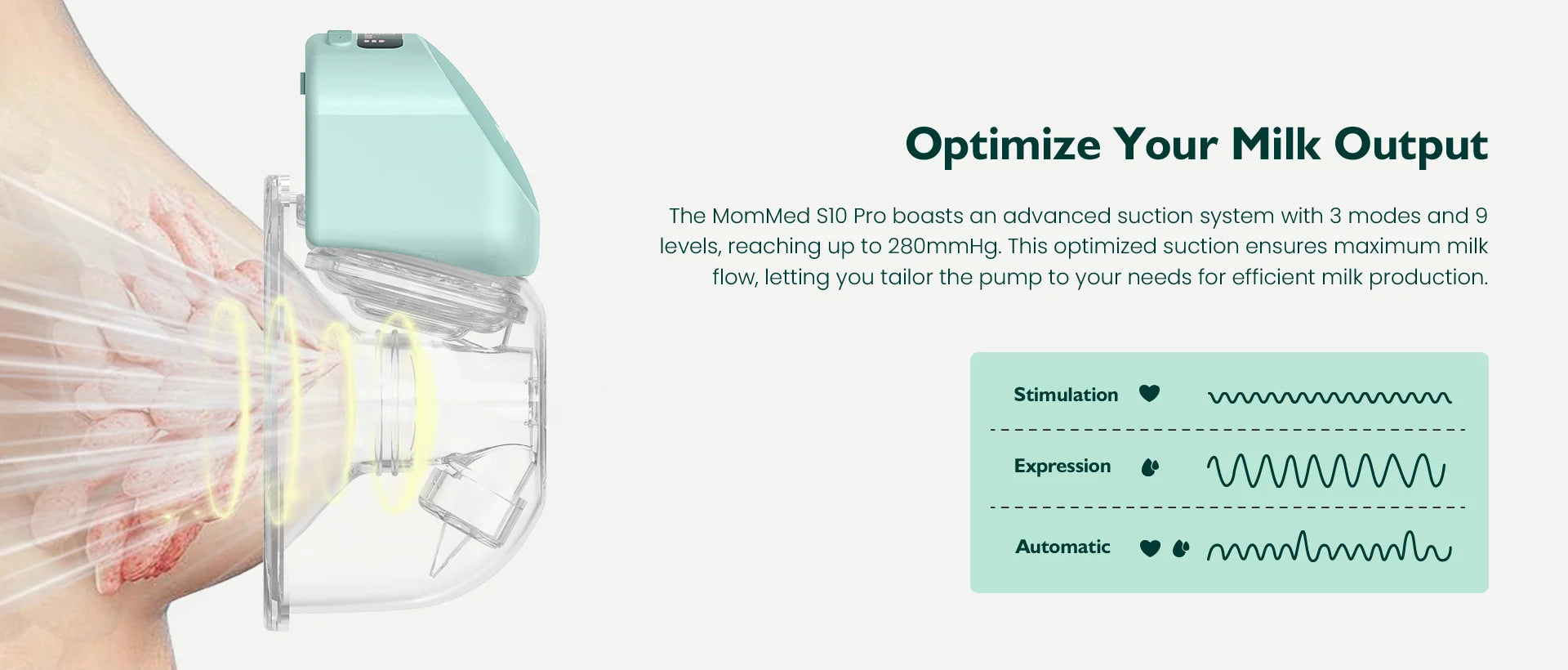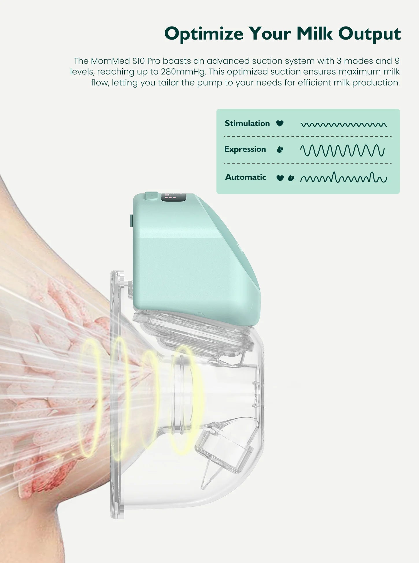 - Efficient milk expression with hospital-strength suction (up to -280mmHG per side)