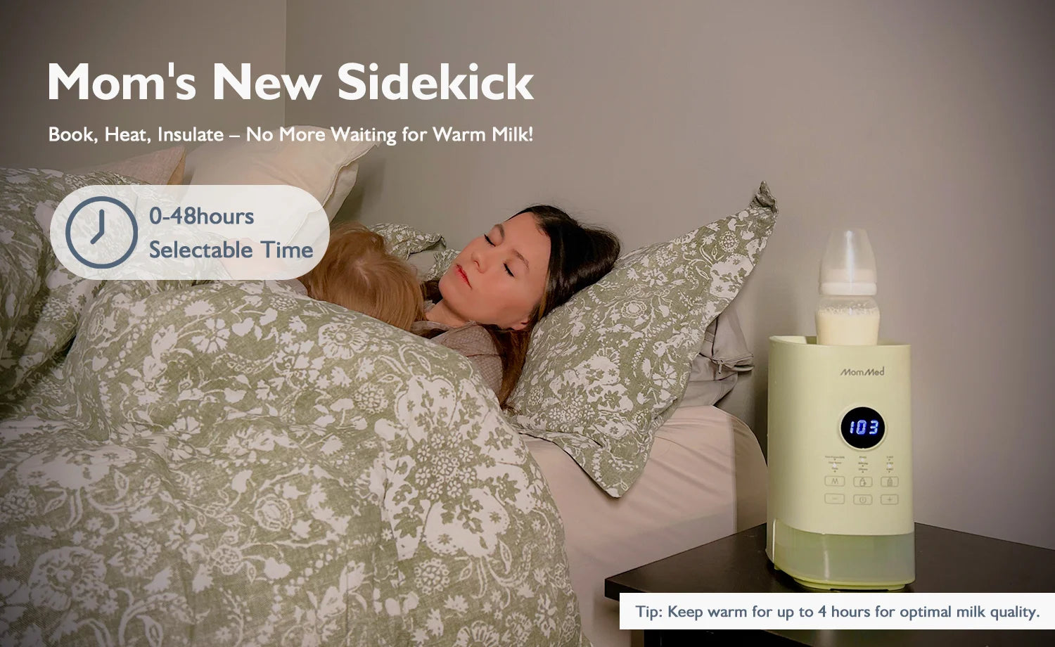 Experience our night mode (Keep) without the late-night milk rush. It maintains milk warmth for 48 hours, ensuring a hassle-free experience, providing warm, comfy milk whenever your baby needs it!