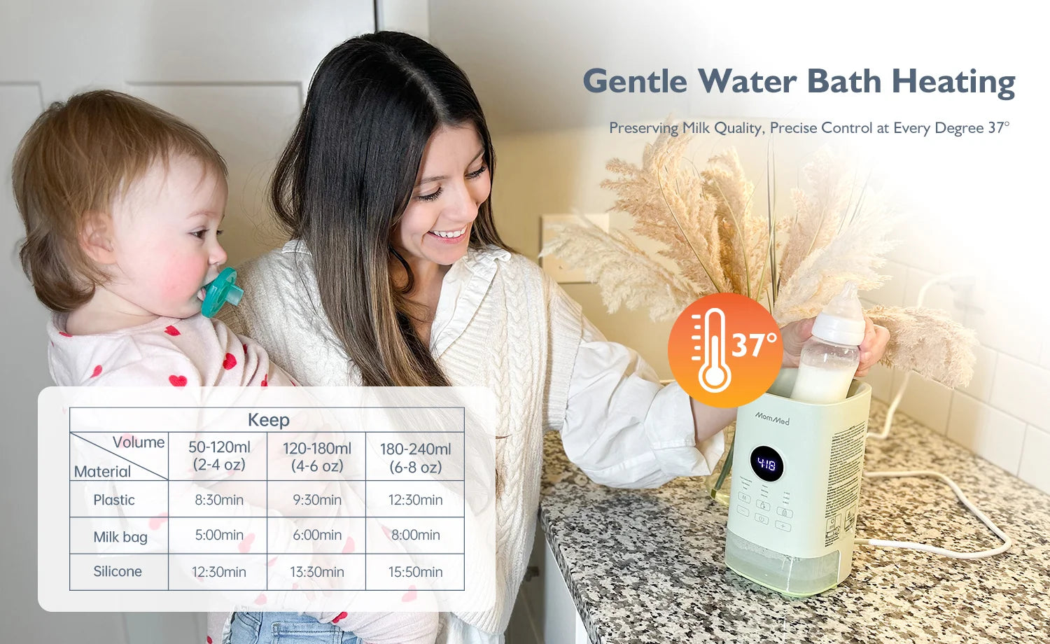 Every drop of that liquid gold is precious. Our gentle water bath heating keeps the temperature even, capping it at a cozy 37°C. Your baby's mouth stays happy.