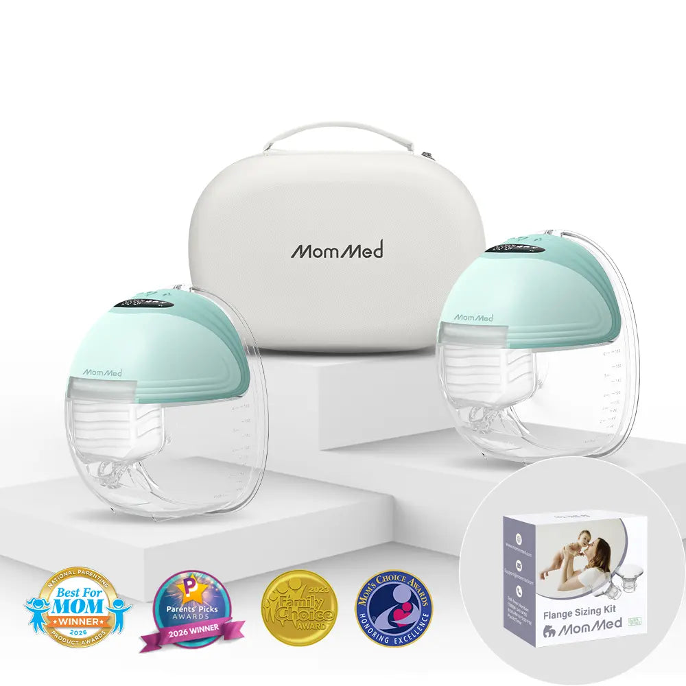 The MomMed S21 breast pump comes with a built-in rechargeable battery that lasts up to 5–6 pumping sessions per full charge. Use the included USB charging cable and allow approximately 2 hours for a full charge. Always charge before first use.