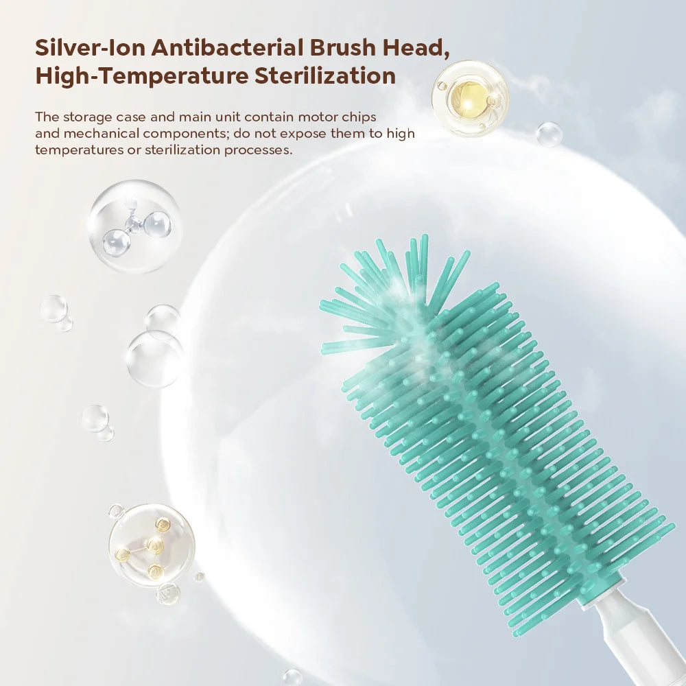 An electric bottle brush saves time and effort—especially helpful for busy parents. It provides consistent, 360-degree cleaning power and reduces hand fatigue from repetitive scrubbing. It’s a smarter, more hygienic way to keep baby items spotless.